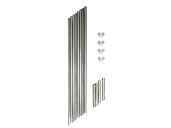 W skład kompletu wchodzą 4 rurki metalowe o średnicy 16mm oraz plastikowe uchwyty mocujące.